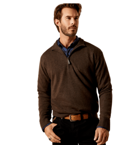 The Ariat Country Bolinas 1/2 Zip Men's Wool Sweater blends style and functionality flawlessly, featuring a 1/2 zip and mock neck to offer a relaxed fit.
