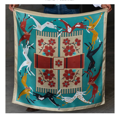 The Journey is a special scarf with the beautiful feel of the plains. Gorgeous colors that bring a touch of class to any outfit. Great with all shades of leather, black, white or throw on with a tshirt and jeans for a more casual look.