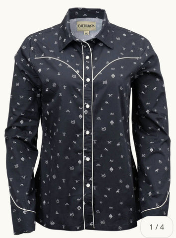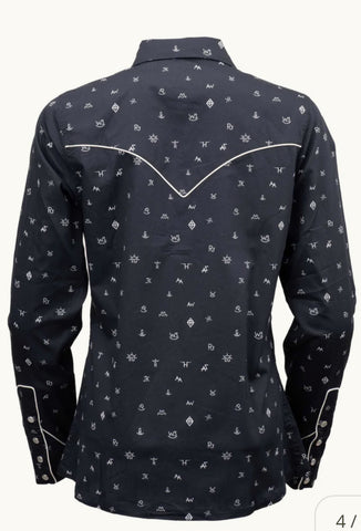 The Cattle Brand Shirt is a true western staple with authentic details. Featuring classic pearl snaps, western yokes, and an allover cattle brand print, it’s built for rugged wear with unmistakable cowboy style.