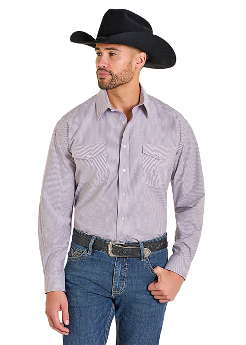 Panhandle Men's Long Sleeve 2 Pocket Striped Shirt