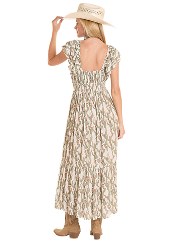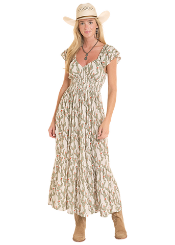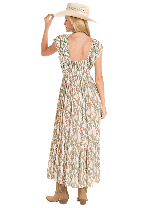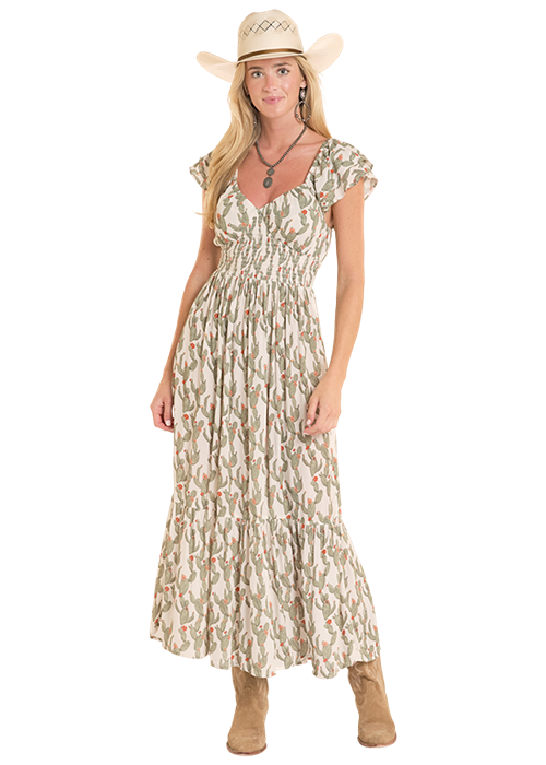 Effortlessly western with a feminine touch, the Women’s Cactus Print Dress is a standout piece for warm-weather style. Designed with a cute flutter sleeve and sweetheart neckline, this maxi dress is the perfect match for your favorite boots. The stretch waist design keeps it cool and comfortable, while the flattering silhouette makes it easy to dress up or down. Pair it with your favorite statement belt for a true western vibe or style it with sandals for a more relaxed look.