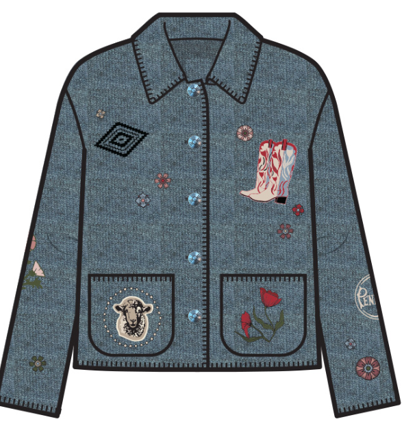 Western-themed appliqué patches and vintage-inspired buttons give this cardigan a nostalgic appeal. Made from a warm cotton-merino blend, it features a shawl collar and whipstitch detailing at the collar, placket, pocket openings and cuffs.