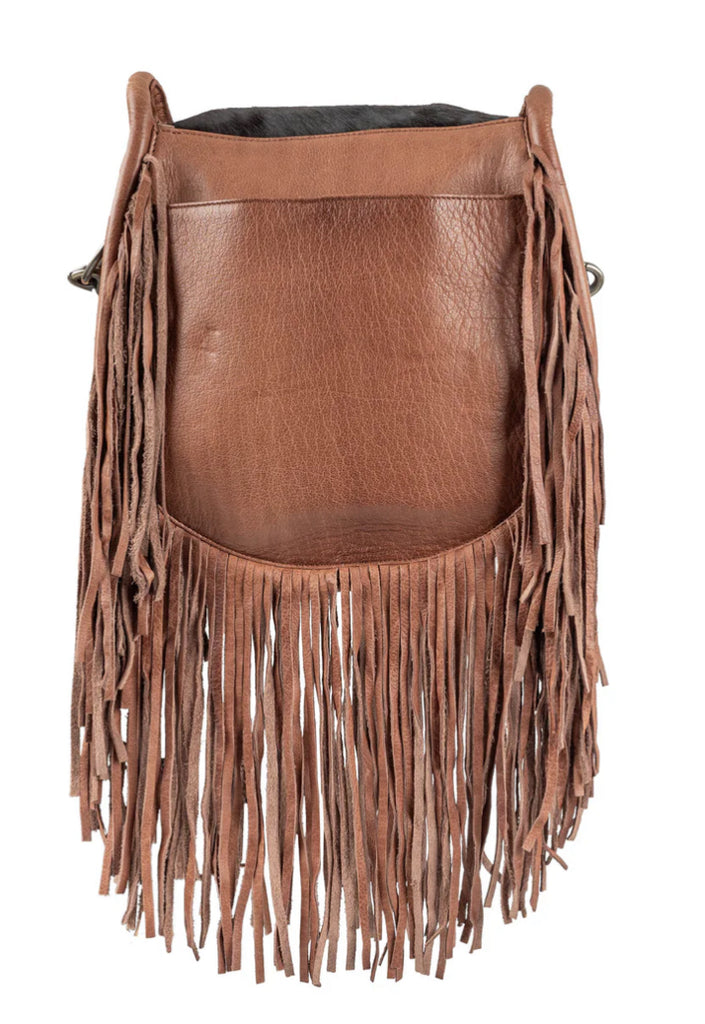 Defined by its natural beauty, the Indie Cowhide Saddle Bag features buffalo leather that is milled to preserve the natural pebble pattern of the leather with hair on hide accents for a touch of western flair.