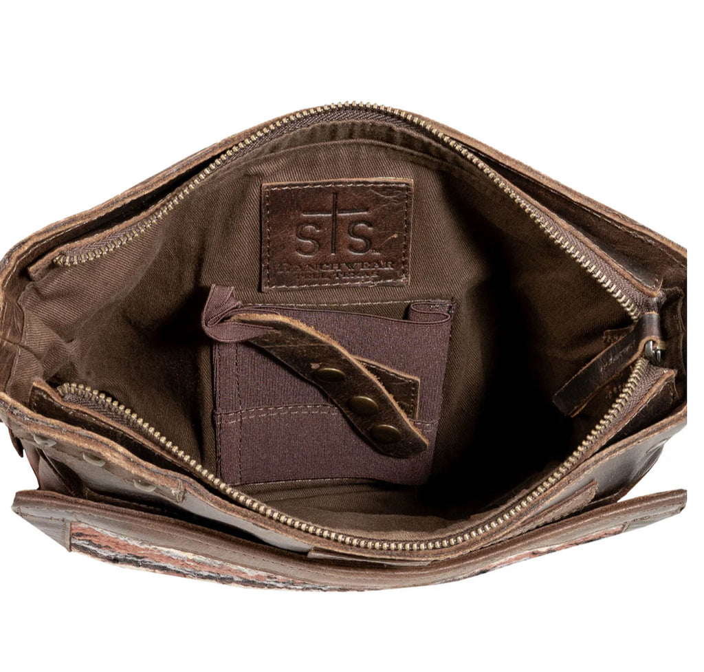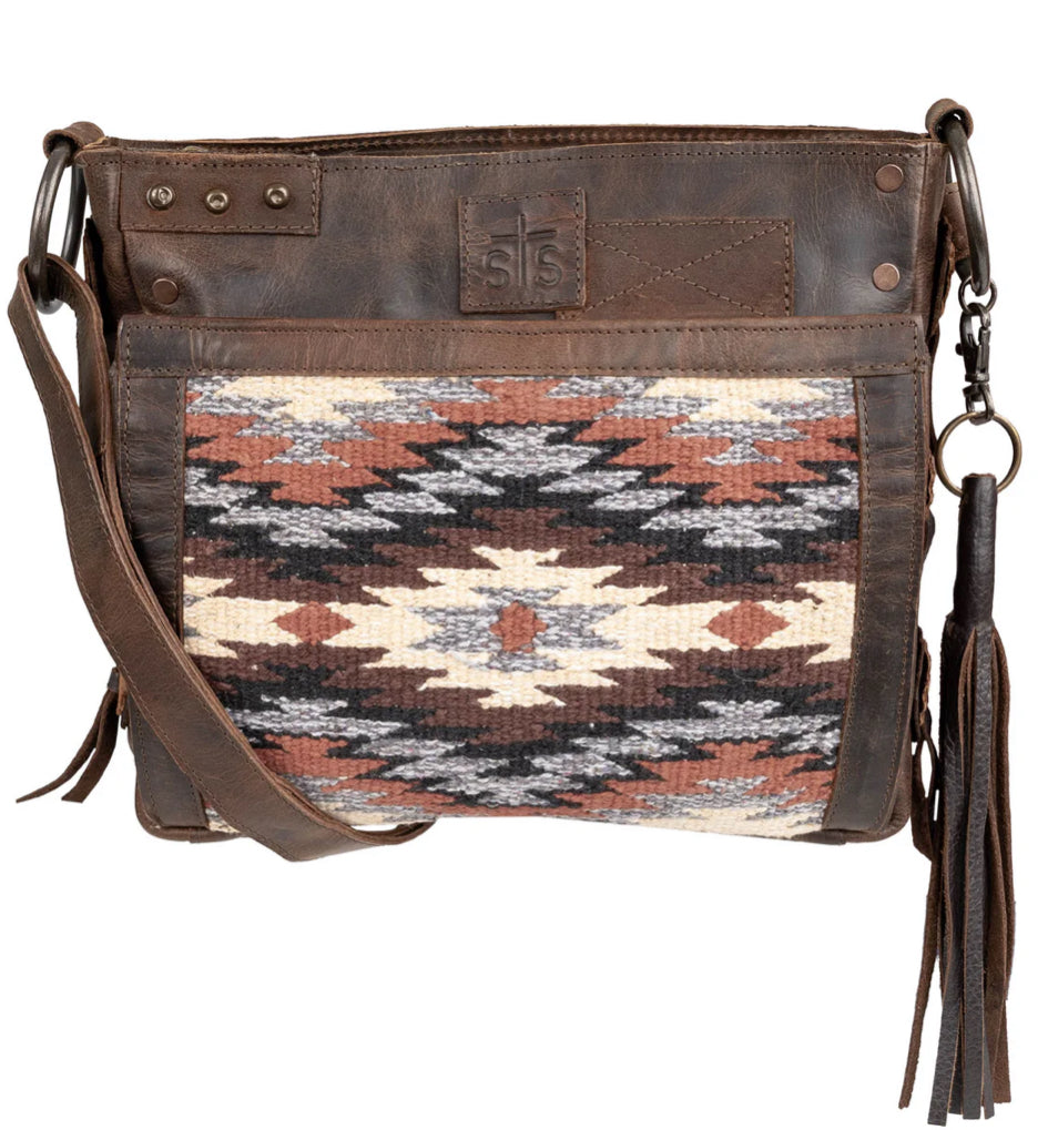 The Guadalupe Serape Olivia Crossbody captures the essence of fall with its rich palette of browns, creams, grays and black colors and is crafted from hand-woven cotton with full grain leather accents for a timeless rustic charm.